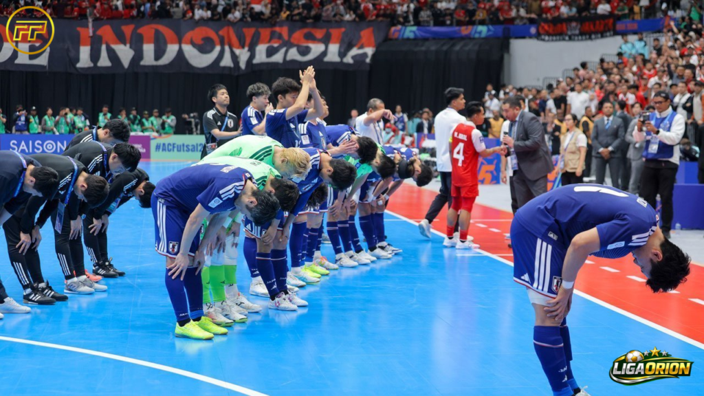 Meski kalah, para pemain dan ofisial Timnas Futsal Jepang menunjukkan sikap profesional dan penuh respek. Setelah peluit panjang dibunyikan, mereka berkumpul di tengah lapangan, menundukkan badan, dan memberi aplaus ke arah tribune pendukung Indonesia.